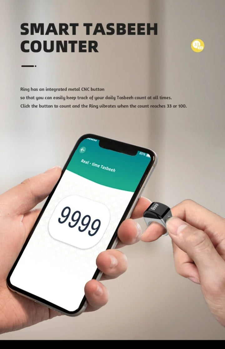 📿 Bague Compteur Tasbeeh Zikr Électronique – Avec Rappel Azan